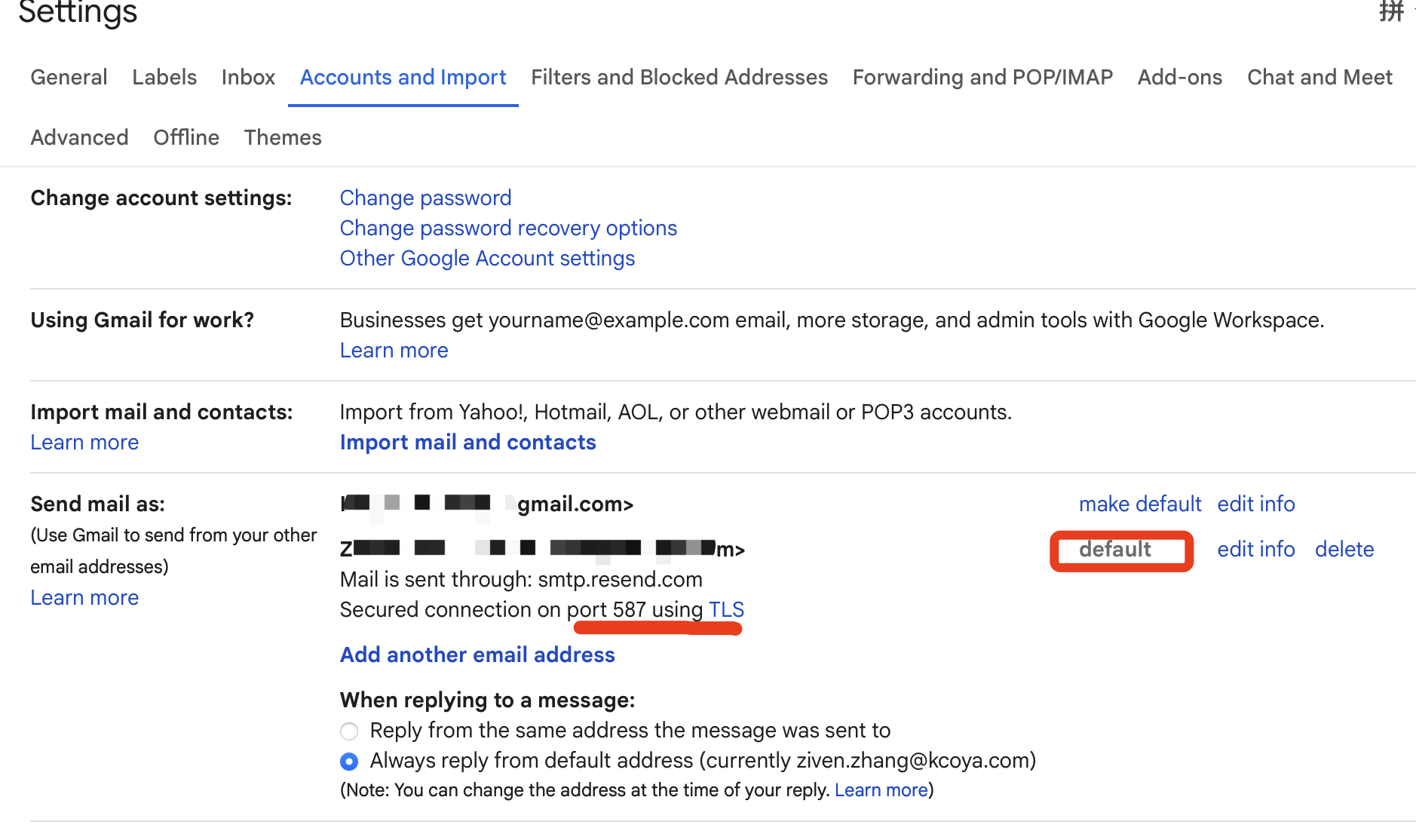 #3.1 找到 Settings -> Accounts and Import -> 在 Send mail as 中点击 Add another email address: