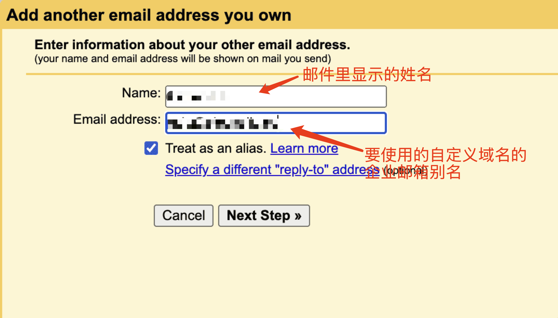 #3.2 填入名字和用于发送邮件的账号