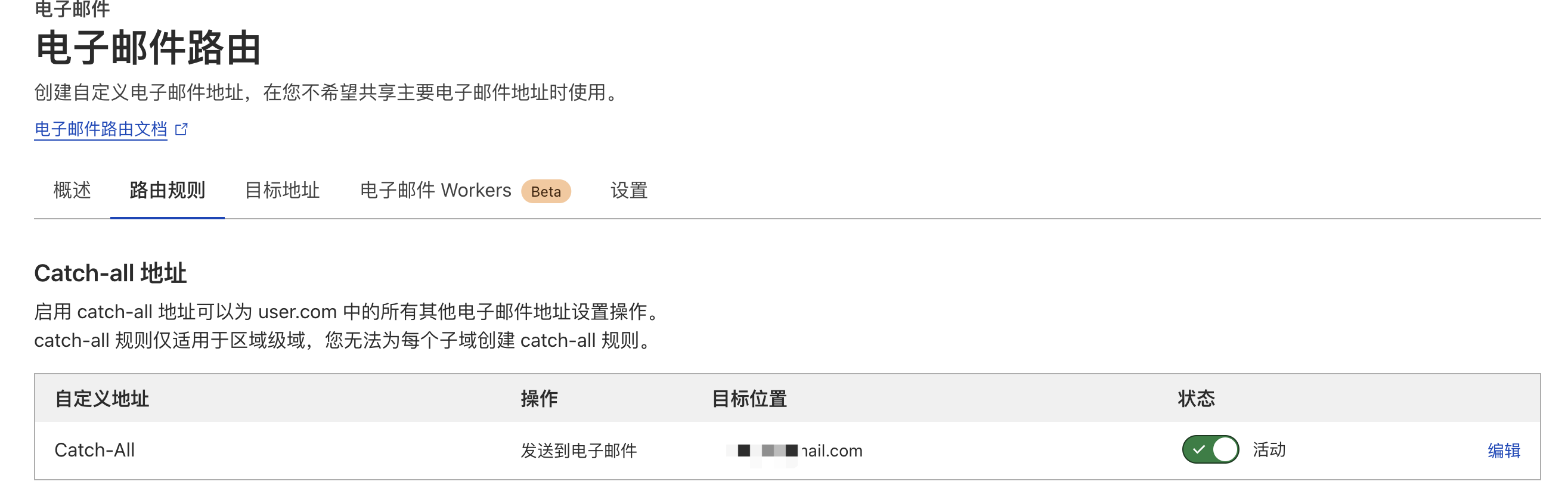 #1.1 进入域名下的「电子邮件路由」